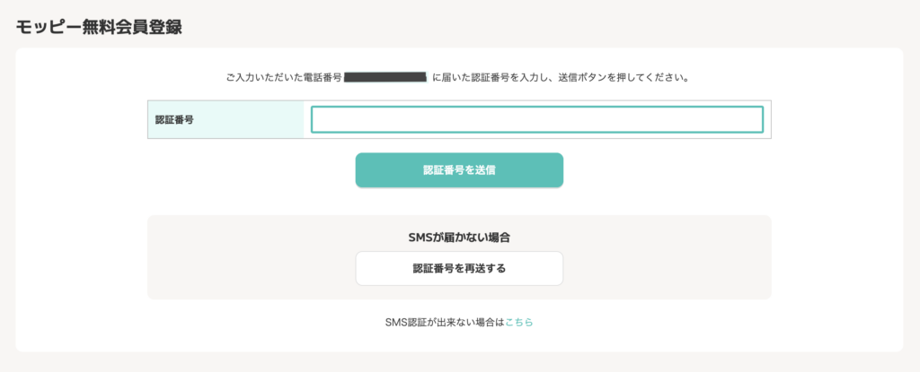 認証番号を入力し、「認証番号を送信」をクリックします。
