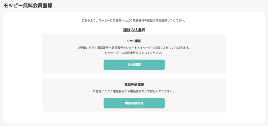 認証方法は、「SMS認証」または「電話発信認証」のどちらかを選択します。
